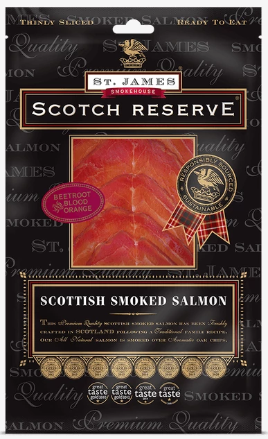 A mouth watering kosher smoked salmon cured in a rich blend of beetroot with blood orange for a subtly sweet & sharp flavour. It’s deep purple appearance makes for a vibrant starter, canape or a striking addition to your Kosher buffet table