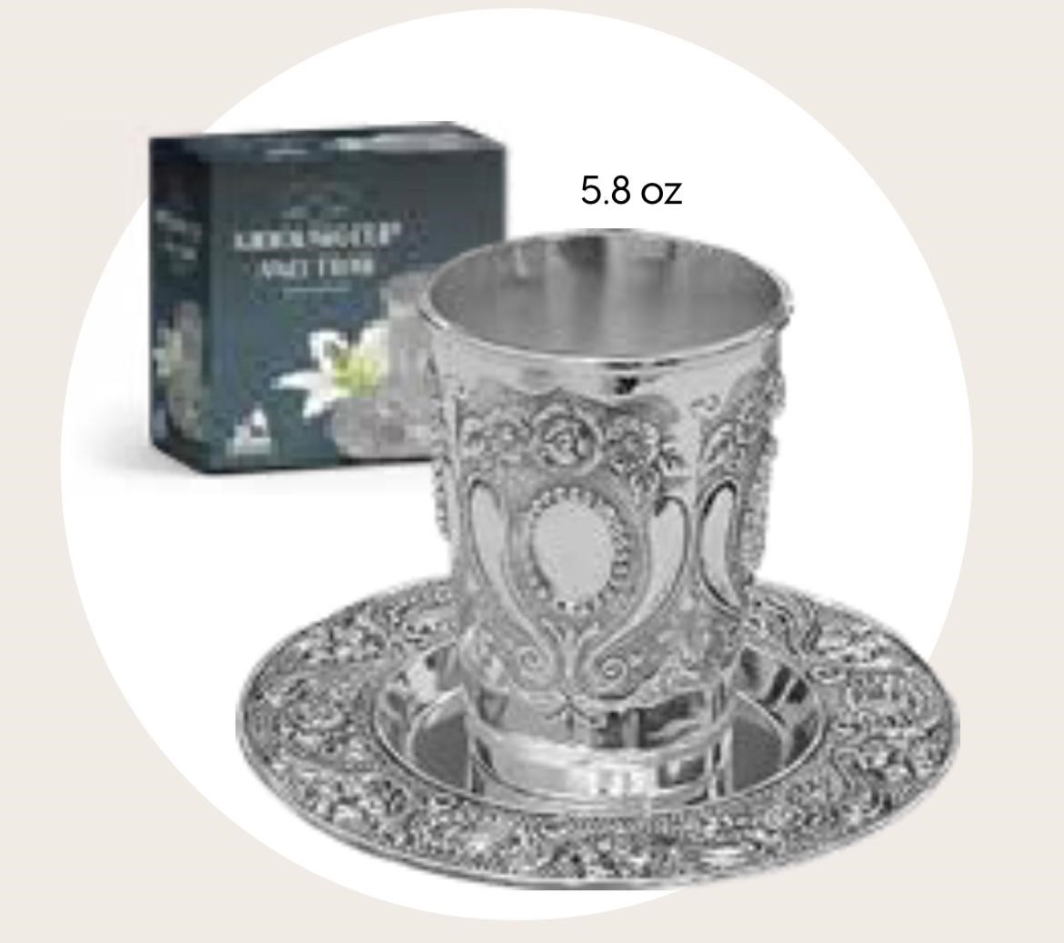 Order Now: Elevate your Kiddush moments with the Silver Plated Kiddush Cup and Tray. Order now from our online Passover shop and infuse your Pesach celebration with elegance and tradition.